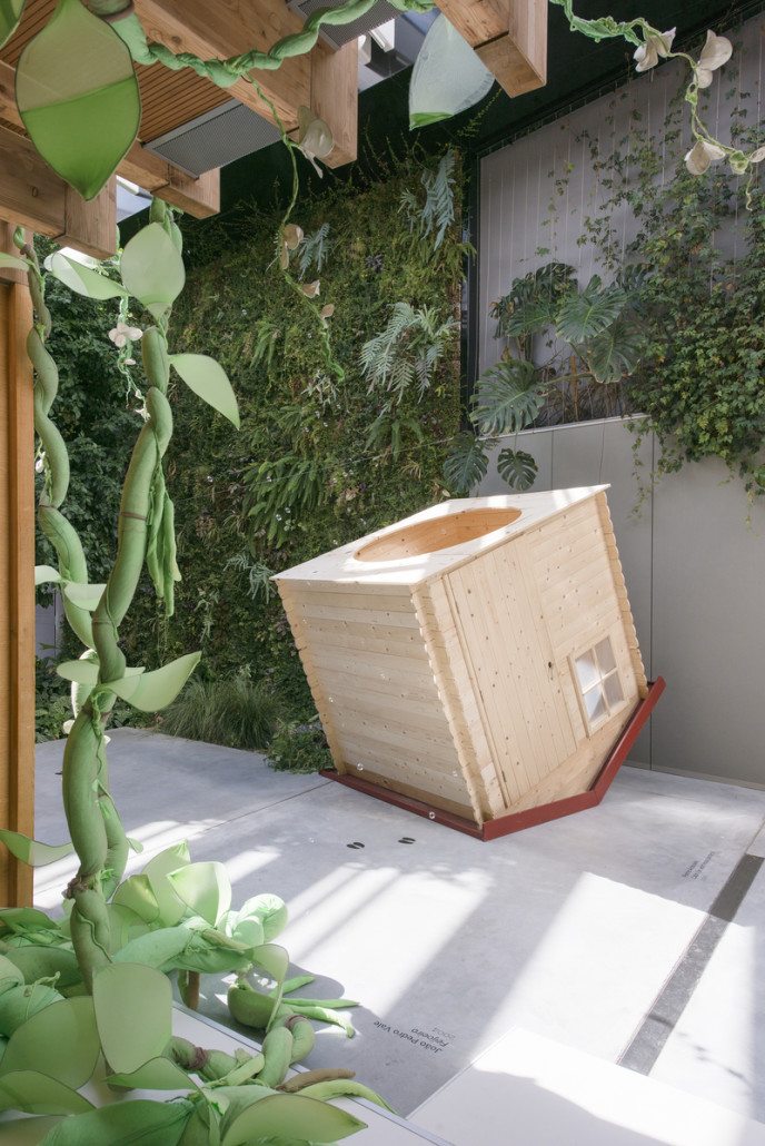 It is a rather unusual exhibition when visitors may discover giant beans in a perpetually growing installation, a flying tepee, an untrustworthy mirror placed at the bottom of a red plastic basin, multicoloured landscapes eaten or eroded away by acid, and a joyous spider suspended from the ceiling. A fantastical tale featuring a motley collection of incongruous objects which seem, almost nonchalantly, to make reference to the familiar figure of Snow White, following in the footsteps of Alice from Rewind—Lab’Bel’s inaugural exhibition at La Maison de La vache qui rit in the spring of 2010.