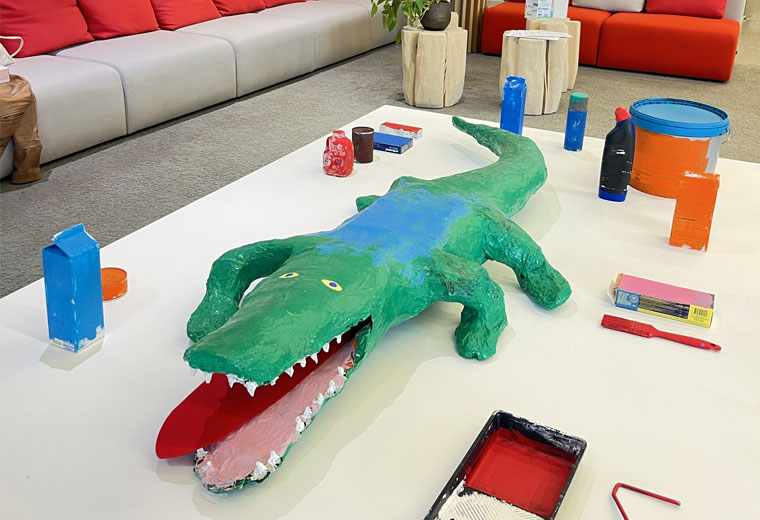 Au même titre que ses confrères reptiles présentés pour la première fois dans le cadre de son exposition monographique Food Chain, au printemps 2025, au Den Frie de Copenhague, le Crocodile (post-war Art Brut landscape) de Henrik Olesen incarne à lui seul une forme très contemporaine de résilience